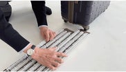 03 スーツケースをクリーナーのレール上を転がします。一回転がせば通常の汚れは取れますが、気になるようならもう一度レール上を転がします。