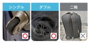 約70Lまでのスーツケースに対応し、キャスターの溝幅に合わせて調整可能。シングル・ダブルキャスターの接地面+側面(5~10mm)までしっかり洗浄できます。※2輪(トローリー)タイプのスーツケースには対応しておりません。