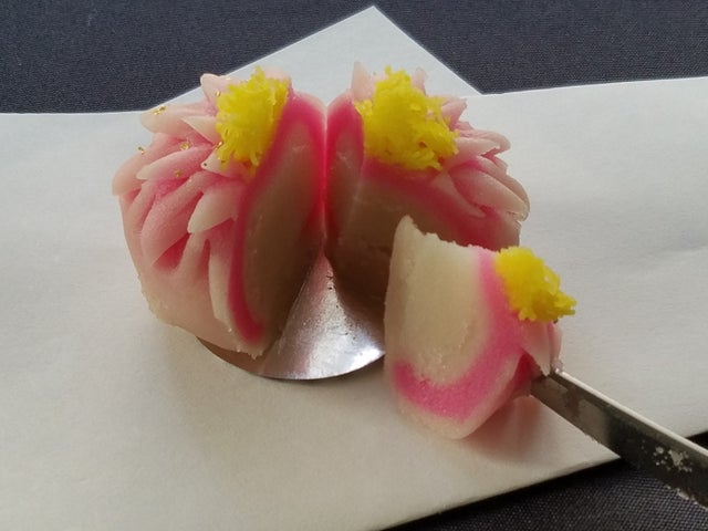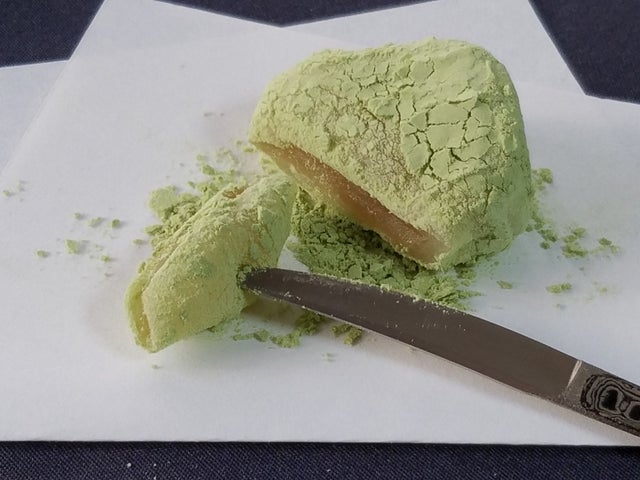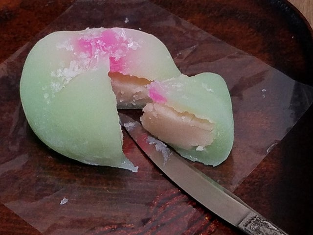 チタンナイフ「彩」の機能性はそのまま受け継いでおり、極めて錆にくく強靭な特性をもつチタン製で、薄いブレードは軟らかい練り切りは勿論、弾力のある餅菓子、崩れやすい焼き菓子や堅いチーズにもスッと食い込み、細工を崩す事無く美しい所作で食べることができます。