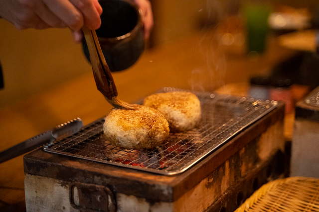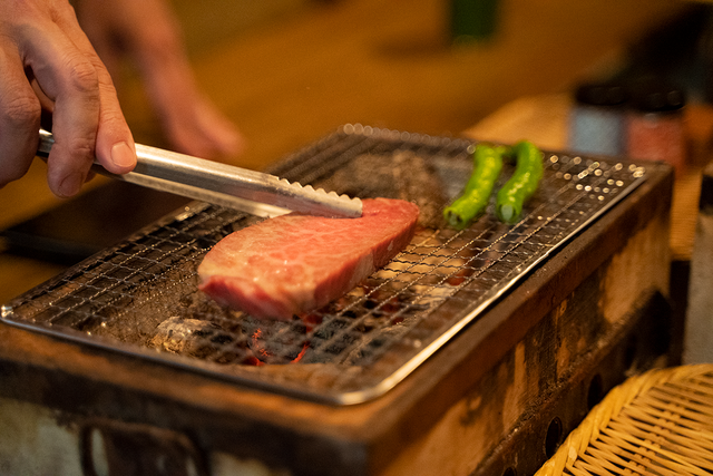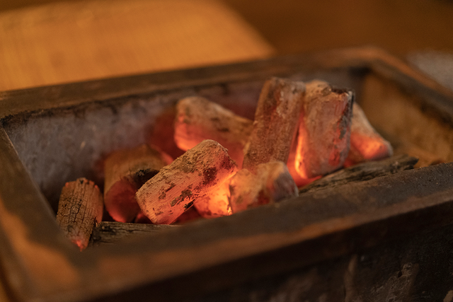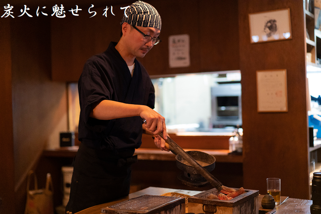 四季折々の旬の食材を上質の炭火でじっくりと焼き上げて食すちょっと贅沢な時間と、古い友人を訪ねたようなどこかほっとできる居心地の良さが溢れるもてなしの空間。