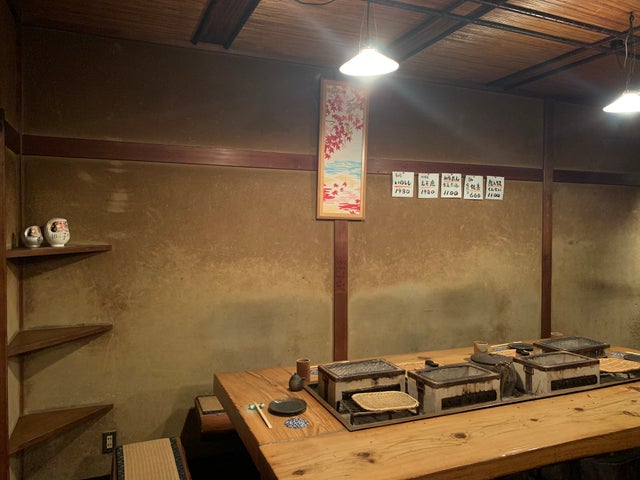 囲炉裏端。寅ではお客様に炭火を囲んで座っていただきます。