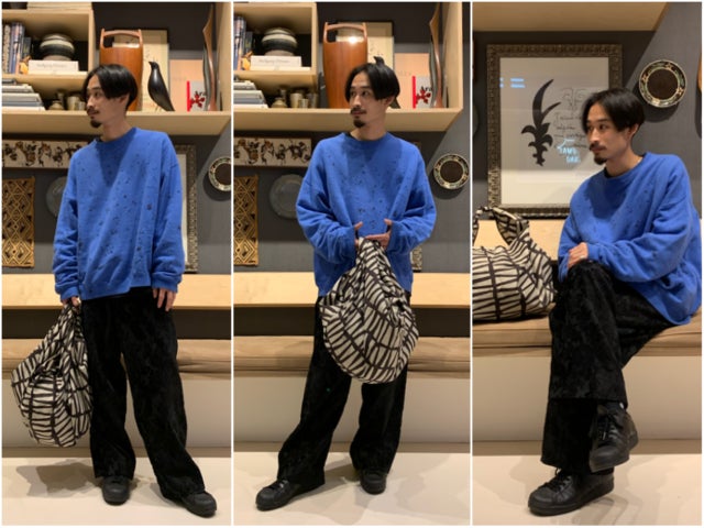 落ち着いた配色の総柄は、老若男女を問わず、服装のテイストを取り入れていただきやすい雰囲気に仕上がりました。
