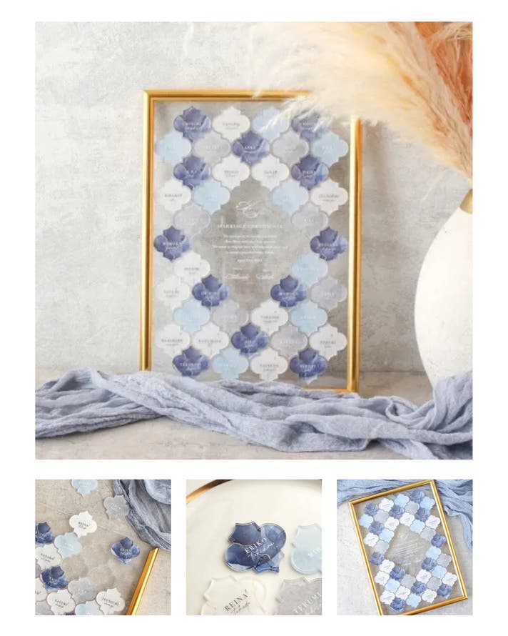 人気No1!ゲストと一緒に完成させる、モロッカンタイル風結婚証明書 結婚式やパーティーでゲストに参加してもらい一緒に作り上げ、完成させる結婚証明書。