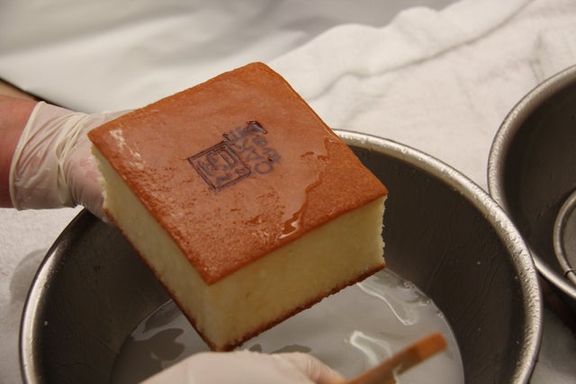 ▲1985年から作り続けている酒ケーキの製造風景