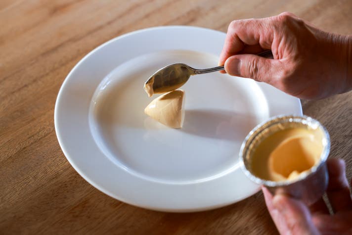 プリンが届いたら、もちろんカップから直接食べていただいてもいいのですが、お皿に盛り直していただくのもオススメです。