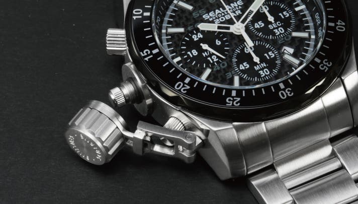SEALANEシリーズは大型のケースに、意匠登録されたスライド式大型リューズガードが特徴でした。