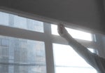 マジックテープの保護フィルムをはがし、窓枠の上段など、希望する場所に押し付けながら貼り付けます。マジックテープが貼れる所であれば、どこにでもブラインドを設置することができます。※追加のマジックテープは別途ご購入いただけます。