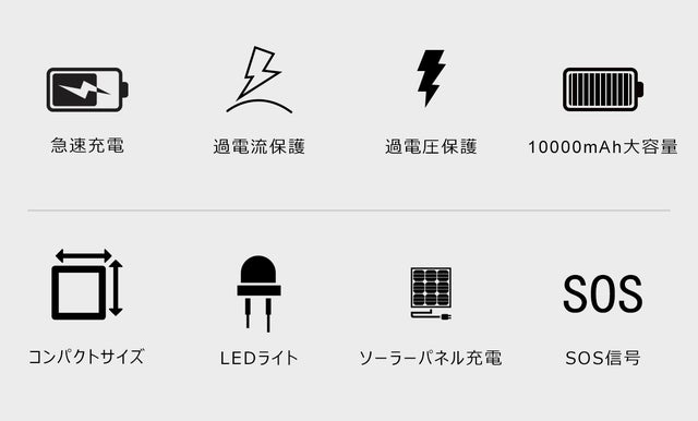 - ソーラーパネルで充電可能、LEDライト機能も搭載、日常・災害時・アウドドアに大活躍!