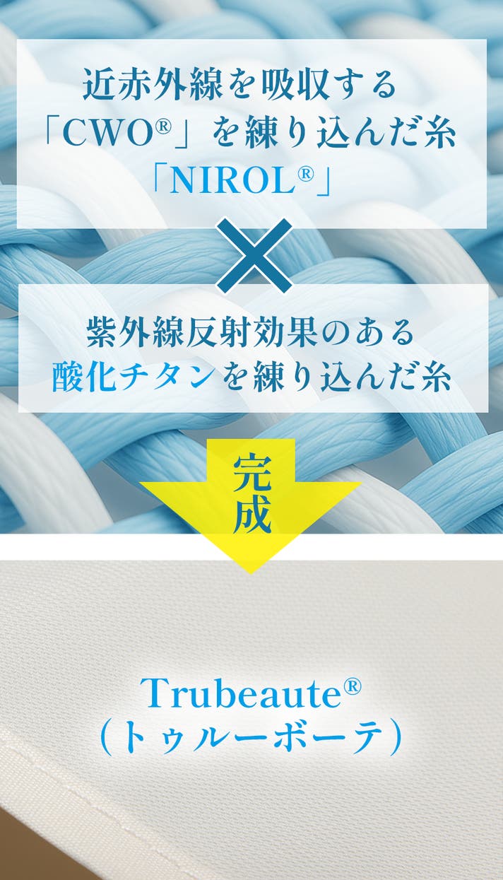 近赤外線を吸収しカットする素材Trubeaute®︎で快適に太陽の下へ。太陽と共に(Sunny+)