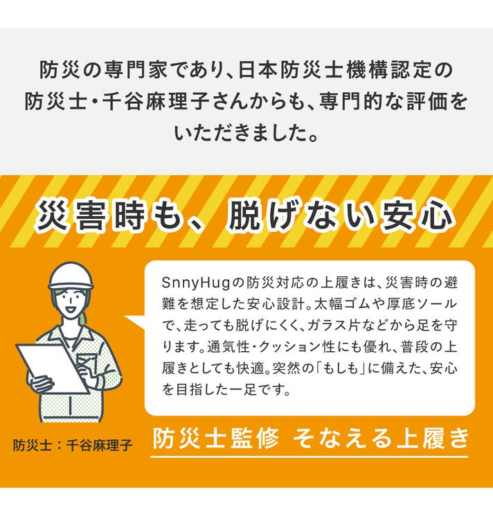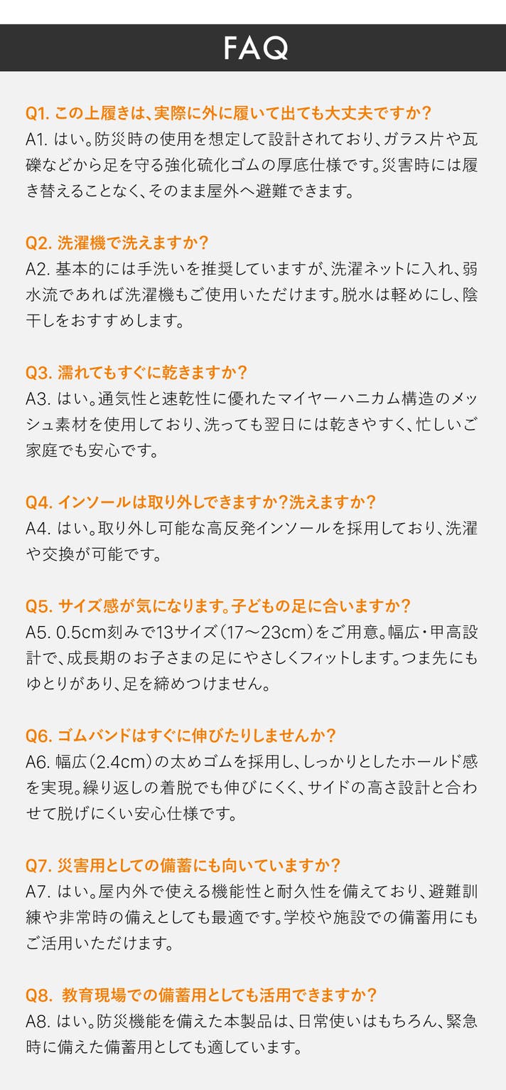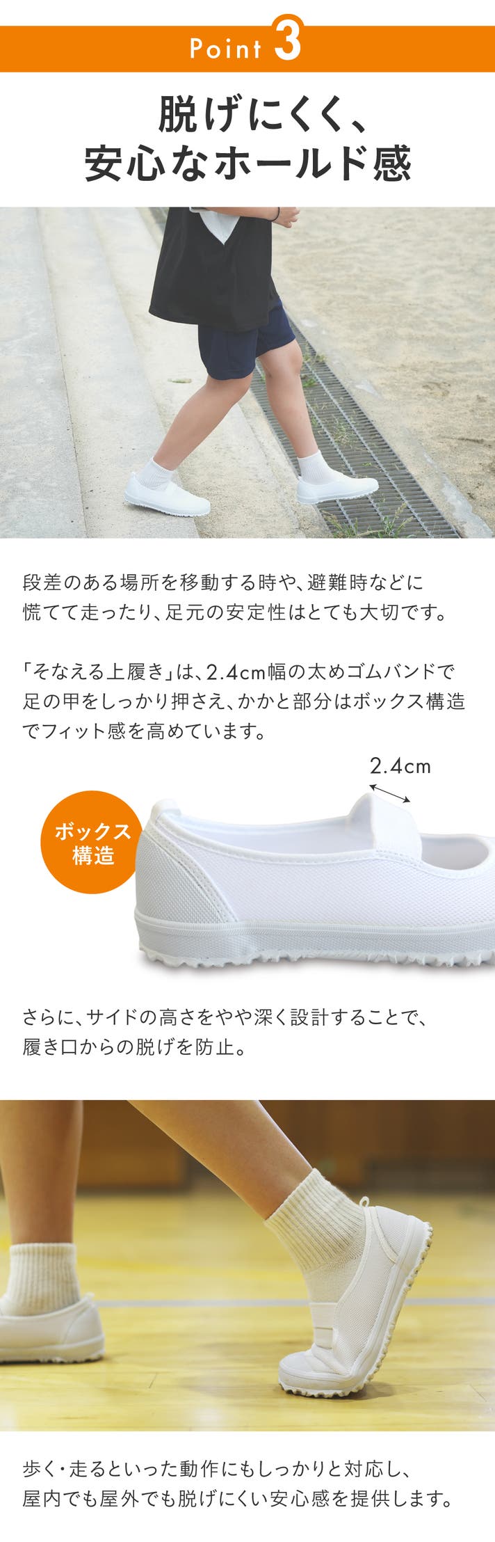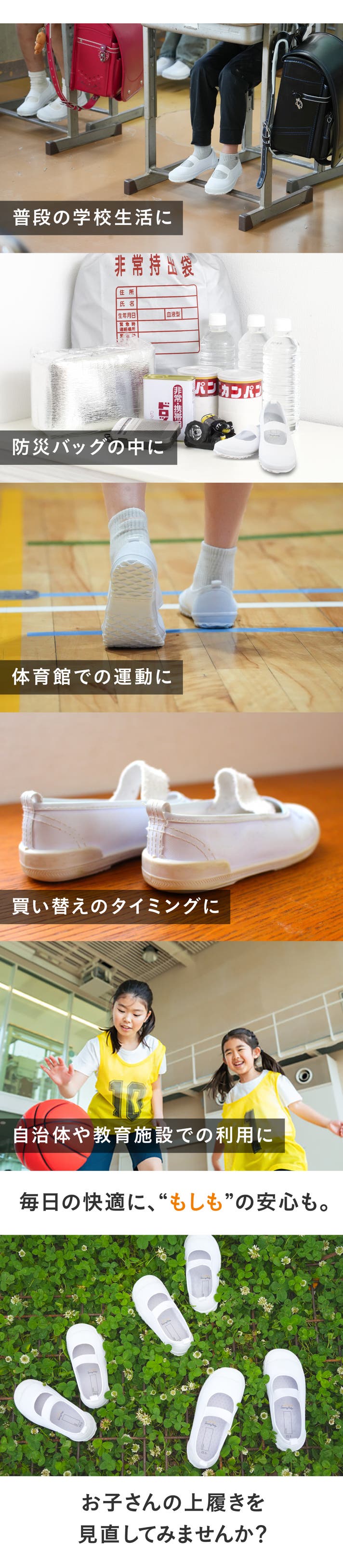 - “もしも”の時に備える上履き。スニーカーのような履き心地で、日常も災害時も子どもの足を守ります