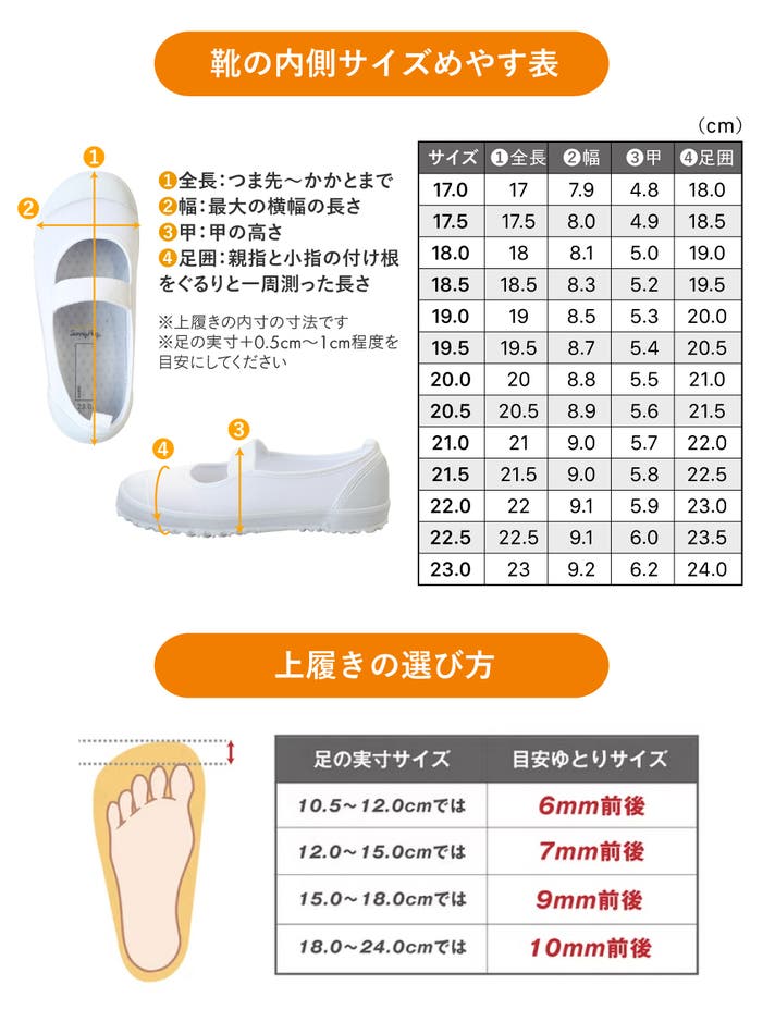 (足の実寸+0.5cm〜1cm程度を目安にしてください)