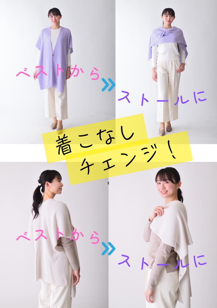 ☆上質な見附ニットが織りなす多彩な表情。アレンジストールがベストとして装いに新たな可能性を