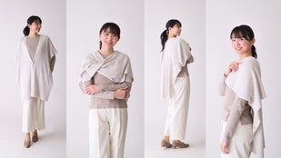 この『ぬくもり纏うアレンジストール』は、4つのカラーバリエーションからお好みの1着を選べ、ストールを少し長めにデザインされたベストとしても包み込むような温かさで工夫を凝らし、高齢者の方々が明るく前向きな気持ちで過ごせるような、ワクワクお出掛けしたくなるような、そんな商品の開発を目指しました。
