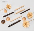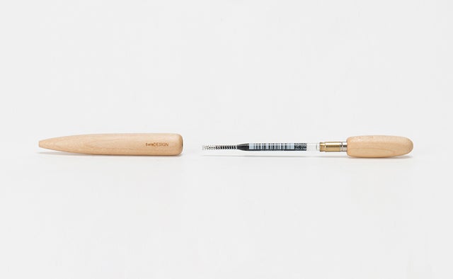 また、手指の汗を一部吸収するのでプラスチックや金属のように滑りにくい。自然の特性とテクスチャーを最大限に生かし、手にしっくりとなじむペンとしてつくり込んでいます。