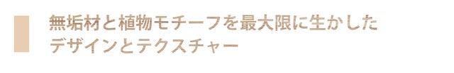 - 天然無垢材と植物モチーフを最大限に生かしたデザインとテクスチャー