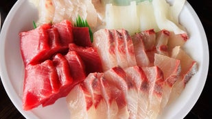 五島産地魚を漁師自ら下処理し、刺身に仕上げます。ブリ、ヒラマサ、天然真鯛、アオリイカ、アジ、イサキなど、何が届くかはお任せください。厚く切られたお刺身は、五島の魚本来の旨味が味わえます。五島の漁師が自信を持って選ぶ、まさに「一期一会」の美味しさです。