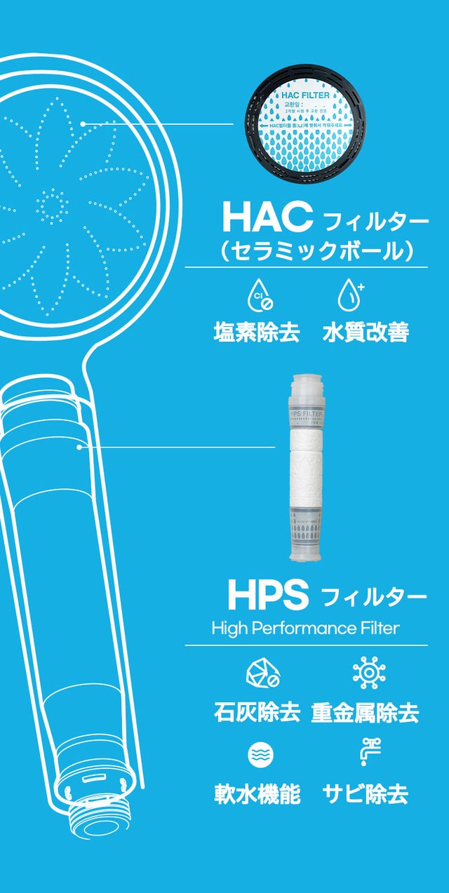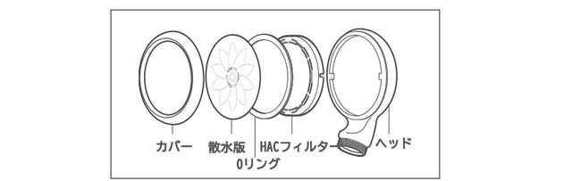 A : HACフィルターはシャワーヘッドの中に装着されており、HPSフィルターは別途包装となります。
