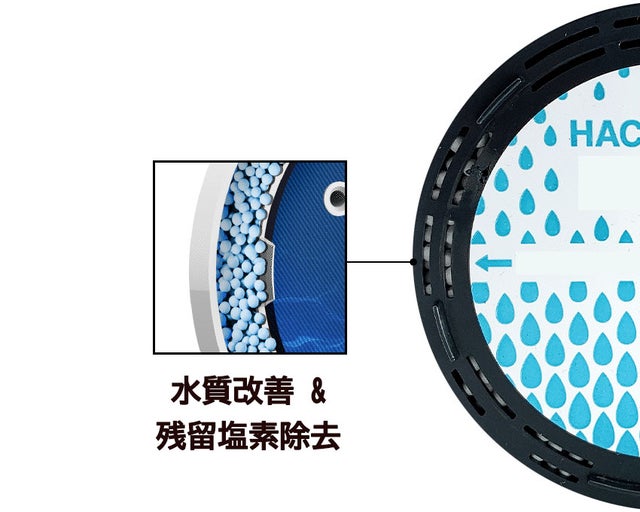 A : HACフィルターには、残留塩素と水の生臭いニオイを除去する機能が備わっています。