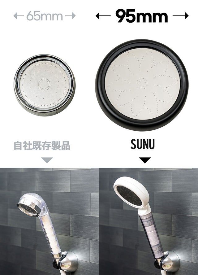 各家庭によって水道管の状態や水質は異なりますが、SUNUシャワーヘッドは4重フィルター付きで、石灰質を抑え軟水機能を高めてくれる機能性シャワーヘッドです。 ヘッドもワイドで、やわらかく肌に当たる水の感触をぜひ直接ご体験ください!