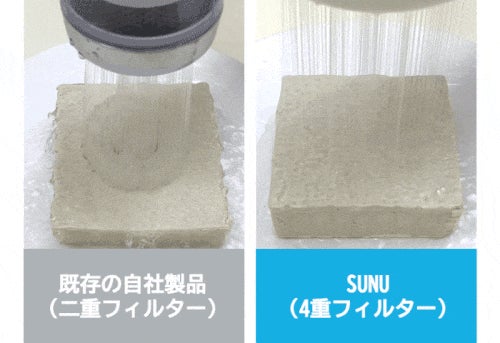 初めまして。生活用品専門メーカーSUNUです。「4重フィルター、軟水シャワー」の開発に至ったきっかけは、遺伝的な理由で敏感肌に悩んでいた母の存在でした。強い水圧やシャワー後に起こる肌のつっぱりで常に不快感を感じていました。そこで、水圧はそのまま水流粒子が小さく柔らかな肌あたりの軟水シャワーを作ろうと思い立ち、製品を企画し製作に至りました。今は「MUGU軟水シャワーヘッド」のおかげで、快適なシャワータイムを満喫しているようです。これからも、大切な家族が使ってもらう満足のいく製品を作るため、絶えず研究し続けて参ります。