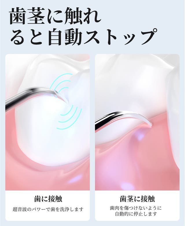 そして、40kHzの高周波超音波を利用しており、振動数200万回/分の強力な洗浄力で歯垢を簡単に落とします。