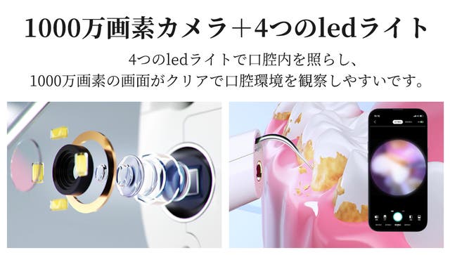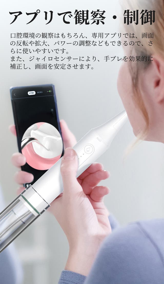 - 1000万画素カメラ付きの超音波デンタルクリーナー、スマホで口腔環境を観察し、手軽く洗浄