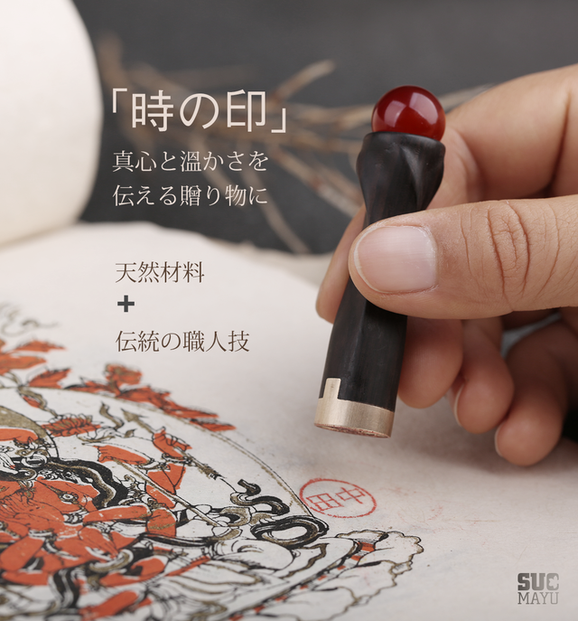 「時の印」には、多くのこだわりとメッセージが込められています。この小さな印鑑を手にしたその瞬間、悠久の「時」があなたと共にあるのを感じることでしょう。
