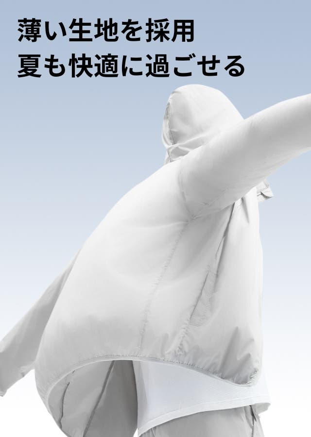 紫外線は通さないけれど、風はさらりと通すのが「超UVカットパーカ」。袖を通した瞬間から感じる爽やかな着心地と、通気性の良さを是非体感してください。