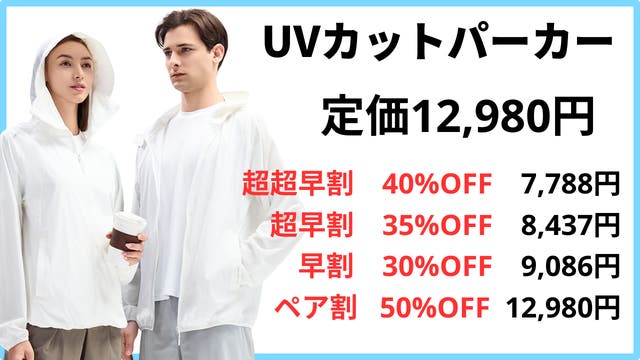 【超超早割40%OFF 先着60名様限定】UVカットパーカー×1着