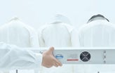 UVカット効果を実験するため、紫外線強度3000w/cm2以上のUVライトを約3秒照射しました。左側と右側には自社従来品、真ん中にはUVカットパーカーを着用しました。実験結果、左側と右側は赤くなっているのに対し、真ん中のUVカットパーカーは肌をしっかり守っていることが確認できました。
