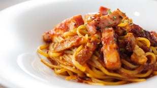 ソースとよく絡ませ、全体が温まったらお皿に盛り付けて完成。