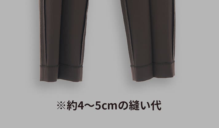 裾部分には約4〜5cmの縫い代(パンツの内側に折り込んで縫製)が確保されているため、すべての方が最大で4〜5cmまで延ばす形で個別に裾直しが可能です。