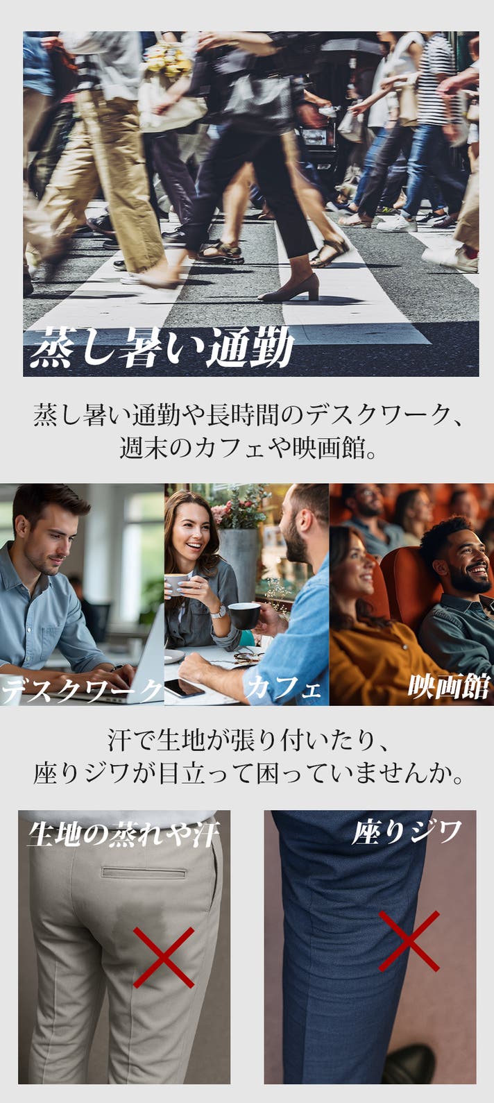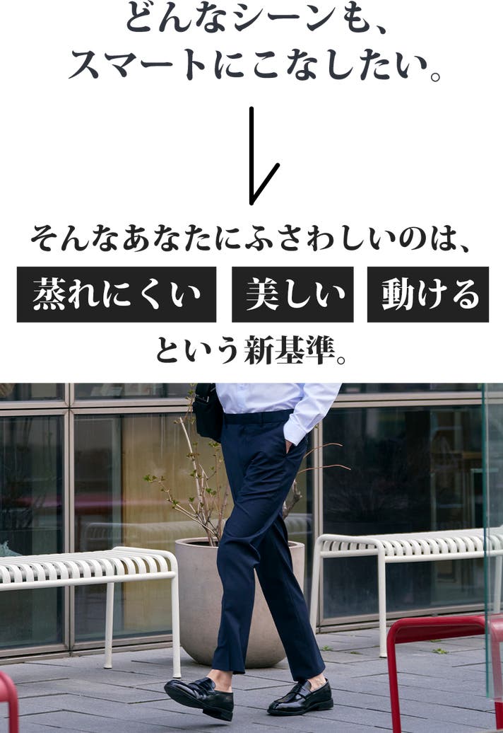 - 動ける、軽い、蒸れにくい!長時間のデスクワークも蒸し暑い日も、これまでのスラックスの悩みを解消