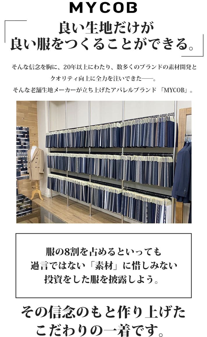 そしてもうひとつの要、”生地”もまた、20年以上にわたり数多くのブランドに素材を提供してきたメーカー「MYCOB」によるものです。