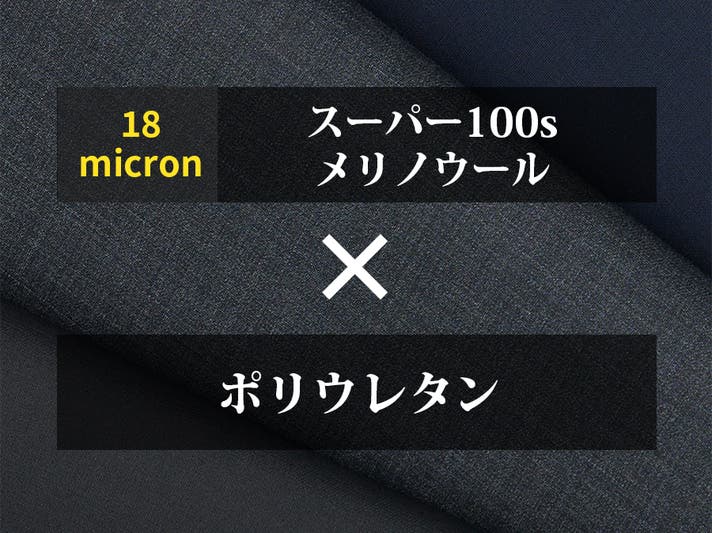 混紡されているポリウレタンは、高性能なストレッチ素材。高弾性・高耐久。スポーツウェア並みのしなやかな伸びと、しっかりと元に戻る回復力を発揮します。