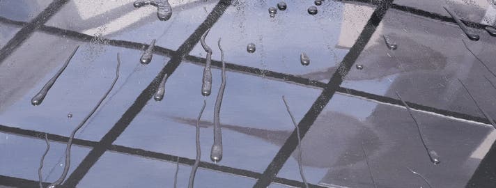 ■施工前:右 水弾きせず水の幕がペタッと広がるような状態。