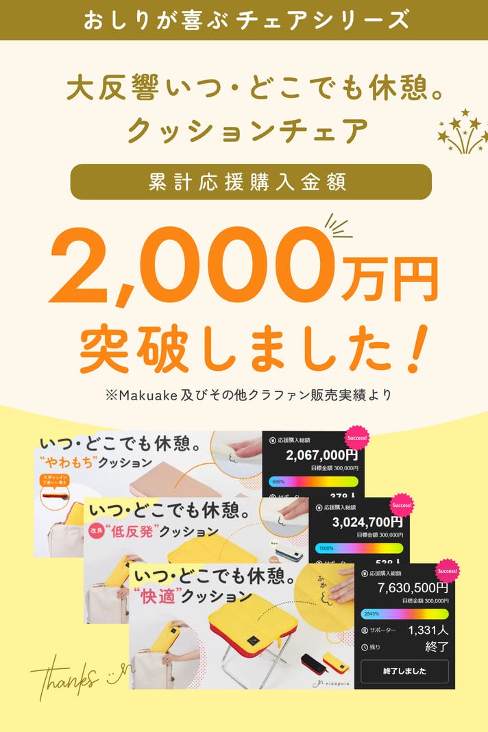 「Makuake(マクアケ)」は、実行者の想いを応援購入によって実現するアタラシイものやサービスのプラットフォームです。このページは、 プロダクトカテゴリの 「【おしりが喜ぶ】パカッ・スポッ簡単組み立て!リュックに入るクッションチェア第4弾」プロジェクト詳細ページです。