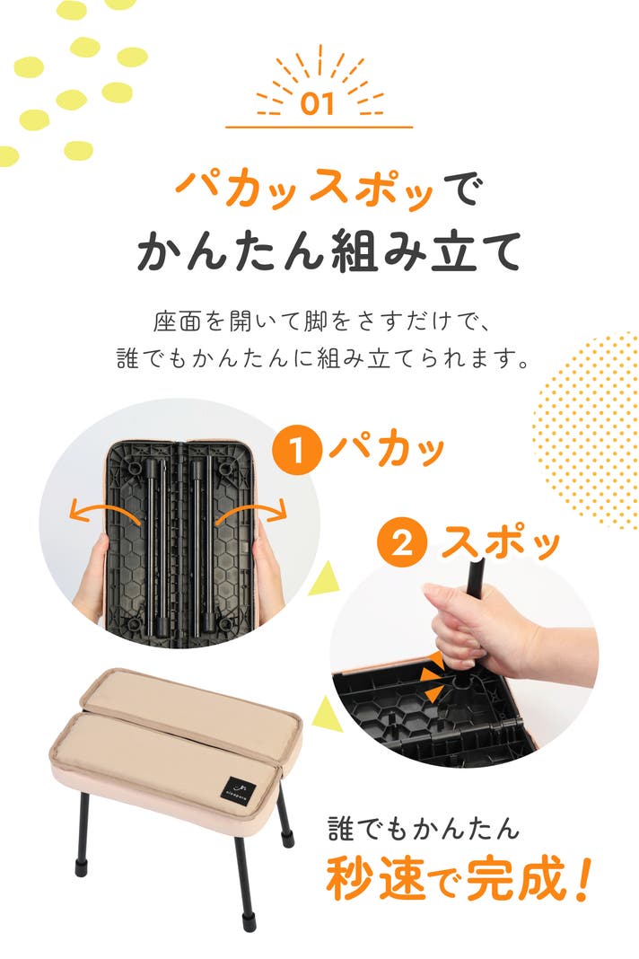 - 4本脚を“スポッ”で完成。大人がくつろげる頼もしさ【耐荷重90kg】※自社実験より