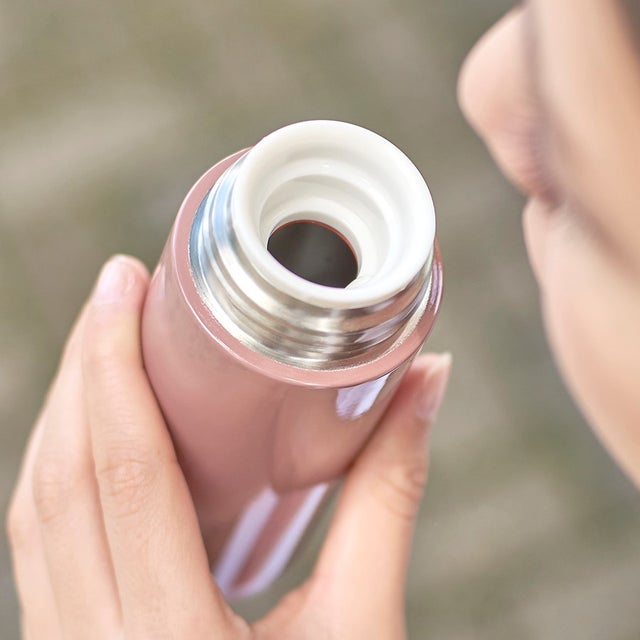 丸みを帯びた中蓋により、氷を入れている場合は直接出てくるのを防ぎつつ、ステンレス部分に唇が触れない設計となっています。