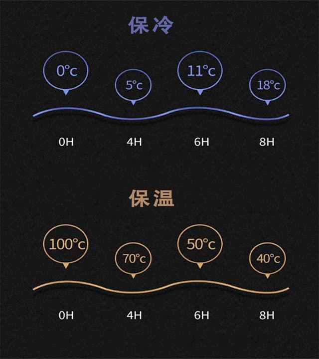 ボトルに入れた飲み物は、100℃のお湯の場合、6時間後で50℃前後、0℃の冷水の場合、6時間でも約11℃の温度維持が可能です。