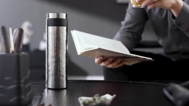機能性とデザイン性を両立させた洗練されたスタイルに仕上がっており、ユニークな電源を必要としない機械式温度センサーが搭載されています。これにより、飲み物の温度を瞬時に確認できる便利さを提供します。