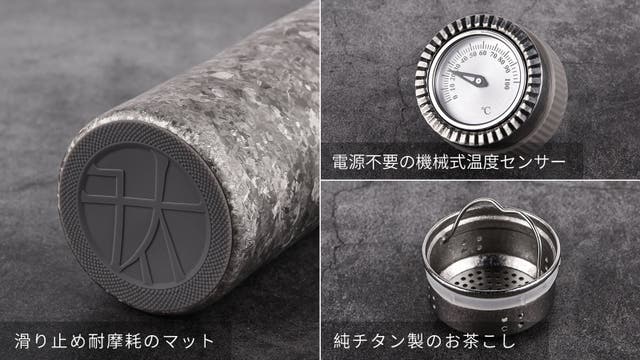 お茶こしも純チタン製ですので、いつでもどこでも心地よく至高の一杯をお楽しみください。