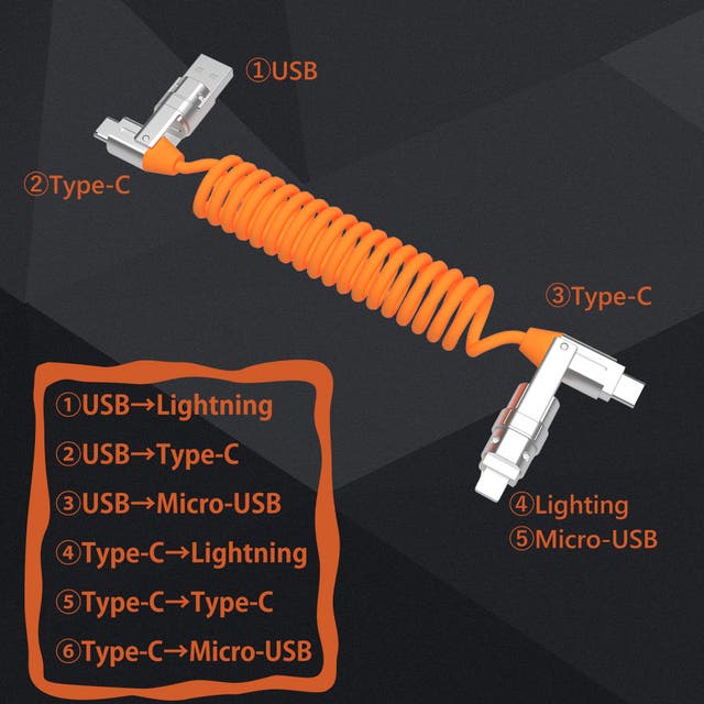 コネクター:6IN1多機能ケーブル:USB、Lighting、Type-C*2、Micro-USB