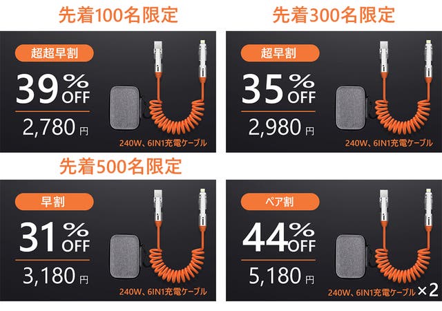 【Makuake限定】240W急速充電対応6IN1多機能ケーブル×1セット