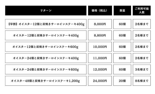 ◾️店舗リターン一覧 Makuake限定 オイスター&炭焼きサーロインステーキセット
