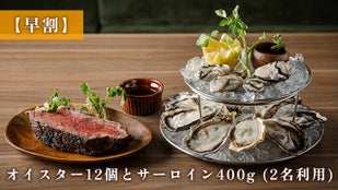 【早割】オイスター12個と炭焼きサーロインステーキ400g(2名まで)+会員特典