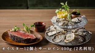 オイスター12個と炭焼きサーロインステーキ400g(2名まで)+会員特典