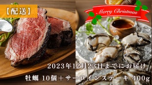 また、遠方にお住まいでお店に来店するのが難しいという方でもお楽しみいただける、牡蠣 10個と調理済みの炭焼きサーロインステーキ 400gを冷凍でお送りする配送リターンもご用意しました。(クリスマスまでにお届けするリターンもございます。)