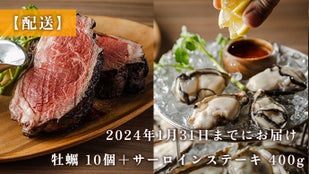 - 自宅でも牡蠣と肉を楽しめる、冷凍牡蠣と調理済炭焼きサーロインステーキの配送リターンもご用意