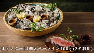 オイスター24個と炭焼きサーロインステーキ400g(2名まで)+会員特典
